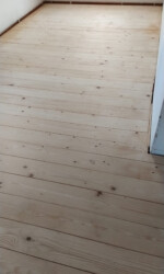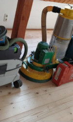In den Kinderzimmern waren bereits die Dielen erneuert und ein Freund schliff diese für uns noch einmal schön ab und erneuerte die Versiegelung. Da hier in den Zimmern noch keine Tapeten geklebt waren, sondern vorab direkt auf dem Putz gestrichen wurde, haben wir direkt Malervlies geklebt und drüber gestrichen.