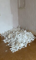 Also ran an die Arbeit! Als erstes wurden die Deckenplatten im Schlafzimmer entfernt.