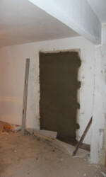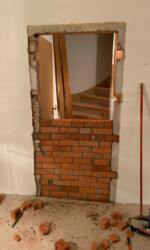 Das Wohnzimmer wurde von den Vorbesitzern vergrößert, indem die Wand zwischen zwei anliegenden Räumen größtenteils entfernt wurde. Da aber beide Türen belassen wurden und wir eine größere Wandfläche für unsere Möbel benötigten, haben wir eine der Türen entfernt und die Öffnung zugemauert. Das war dann auch meine erste Erfahrung mit dem Mauern, aber auch dabei hatte ich tatkräftige Unterstützung vom Schwiegervater und vom Schwager. Schwiegerpapa durfte dann auch gleich noch verspachteln. Denn das musste ich mir auch erst einmal ansehen.