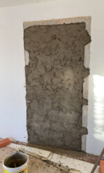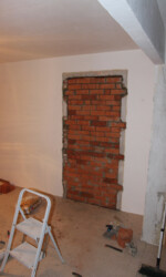 Ein Überraschung hatte das Schlafzimmer übrigens für uns parat. Nachdem die Vorbesitzer das Schlafzimmer ausgeräumt hatten kam hinter dem Kleiderschrank ein altes Fenster zum Vorschein, welches zwar zugemauert wurde, aber nur mit einer Reihe Ziegel statt zwei Reihen. Man hätte es gut als Deko-Fenster belassen können, da sogar das Fensterbrett noch dran war, aber das passte uns nicht so richtig in den Kram und wurde später zugemauert.