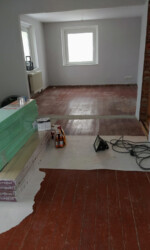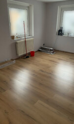Freunde von uns übernahmen anschließend kurzerhand die Verlegung des Laminates im Wohnzimmer und die Anbringung der Laminatleisten.